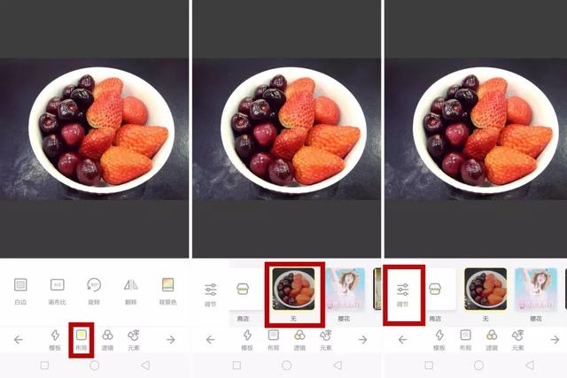 依照照片比例调节画布,通常为4:3或16:9。然后选择滤镜,为了保留原图效果通常选择「无」,再按左下方调节键。